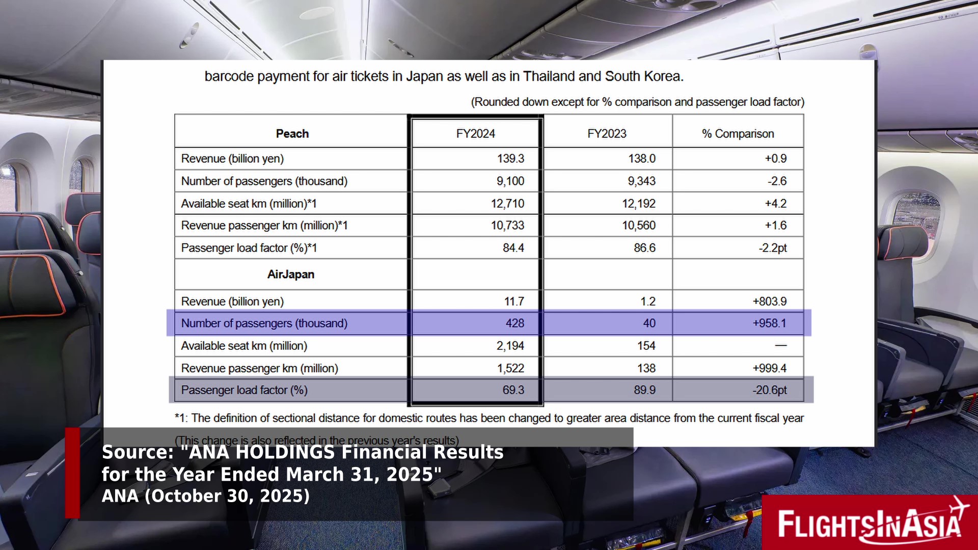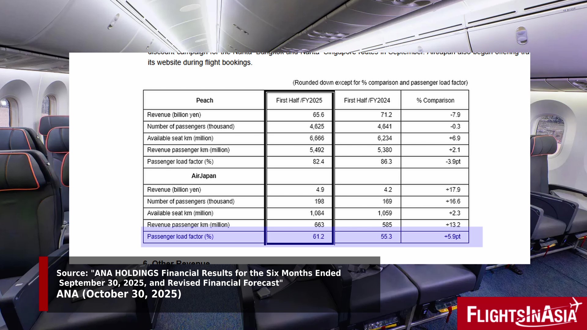 This is also reflected on ANA Holding's Financial Results for 1H FY2025 posted at the end of October. During the period (April-September 2025), AirJapan's Passenger load factor was 61.2% following a reported 55.3% during the same period the previous year.