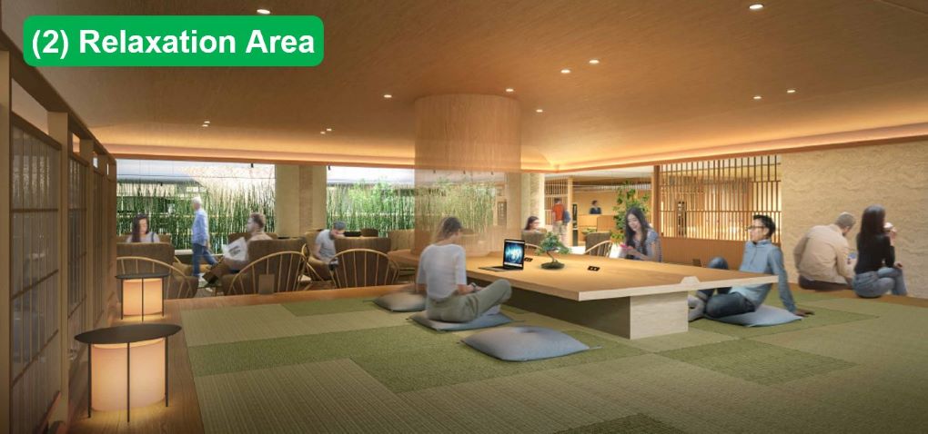The facility will feature an entrance featuring Bamboo handicraft “Ring of Sky” by Tanabe Chikuunsai, and digital art work also with a Bamboo motiff.