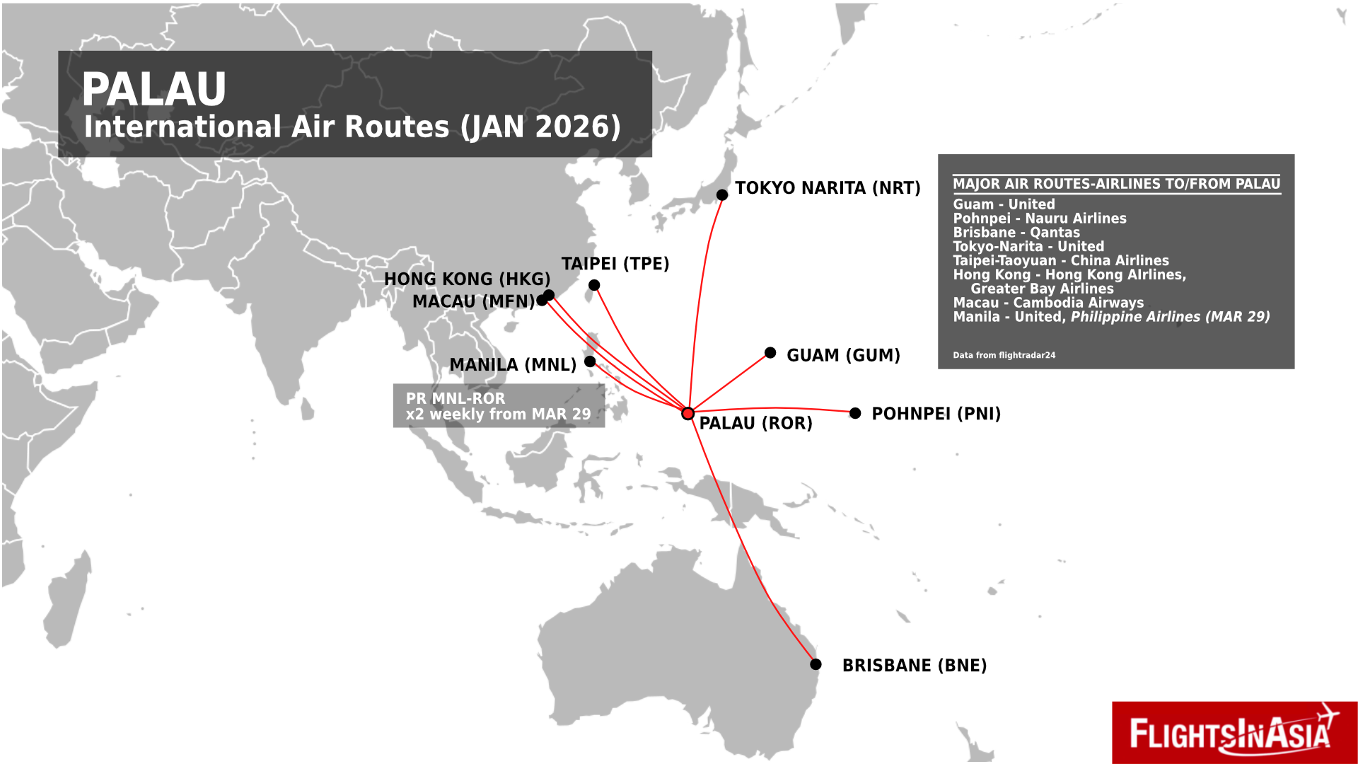 As the lone full service carrier of the Philippines, Philippine Airlines is now taking steps to counter United's increased presence in the country. It is doing so with new routes in United's Pacific playground such as between Cebu and Guam which was launched before the end of 2025. The Cebu-Guam route will be followed by a return to Saipan and a new service to Palau. Both starting March 29, Philippine Airlines will operate two weekly flights on each route from Manila. Philippine Airlines will soon compete with United's own flights from Manila to Palau, and will become the lone airline operating direct flights from Manila to Saipan.