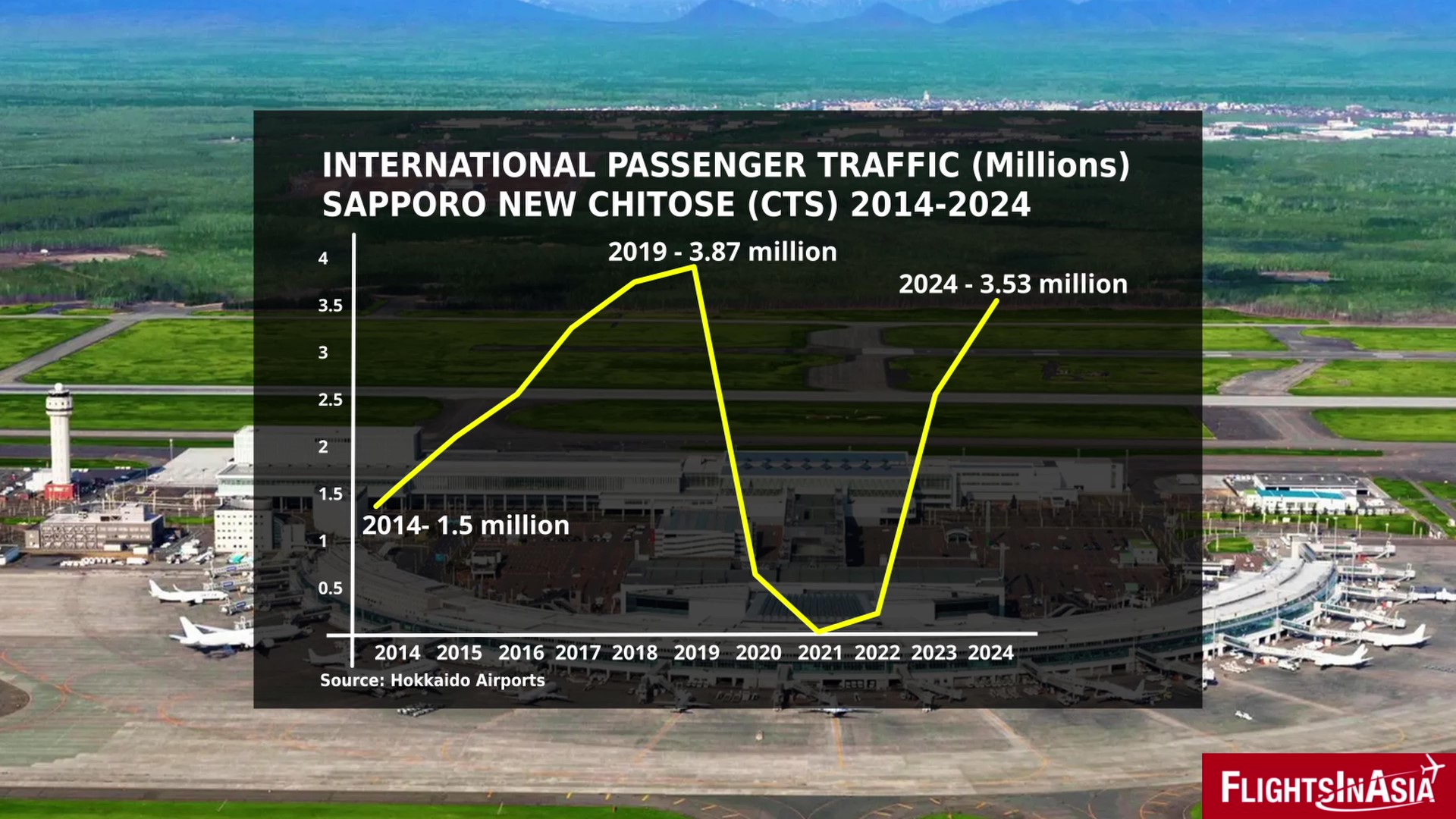 The growth of international flights to/from Sapporo has been a boost to the tourism industry in Hokkaido, as the international passenger traffic to/from New Chitose Airport has more than doubled since 2014. Interest in Sapporo from outside Japan was growing prior to the pandemic, as its international passenger numbers peaked in 2019 with nearly 3.87 million compared to just 1.5 million in 2014. After the pandemic, international passenger traffic already recovered to 3.53 million in 2024 – 90% compared to 2019. It can be expected that international passenger traffic at Sapporo will reach record highs by 2030 if not already.