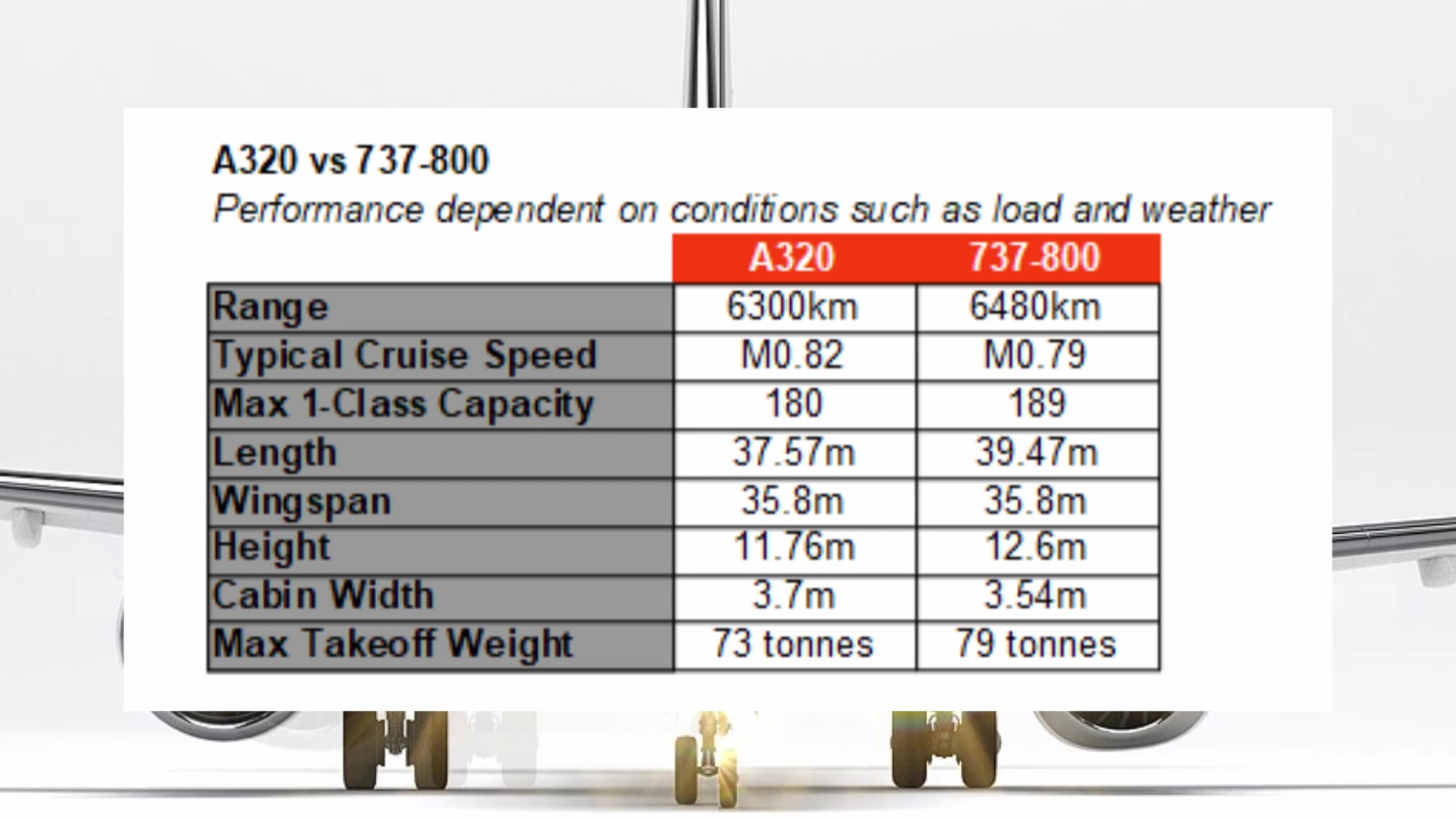 Both the A320 and the 737 are single-aisle twin-jets with comparable size, speed, range, and passenger/cargo capacities. Though the A320 introduced something new at the time of its launch – a digital fly-by-wire system. The A320 also has a slightly wider cabin, with a taller landing gear that makes it sit slightly higher when on the ground. Besides the technical specifications, their list prices and leasing rates are usually similar compared to the 737 having a higher price.