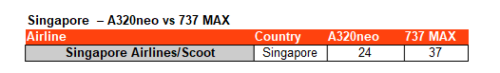 In Singapore, Singapore Airlines Group continued to use the former SilkAir's 737-800s and took on its prior orders for 37 737 MAX. After integrating the former Tigerair's orders into its budget brand Scoot, it also took on orders for 24 A320neo jets. Around 20 of the jets are currently operating with the airline – mostly with Scoot. Singapore Airline's 737-800s have since been phased out, replaced by 20 MAX.