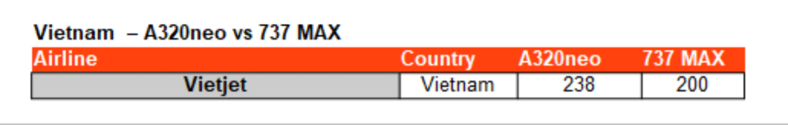 Vietnam is another contested country despite most of its airlines operating A320 aircraft. In Vietnam, there are 238 orders for A320neo Family jets. However, Vietjet also made a commitment with Boeing for 200 MAX. The first few 737 MAX jets have already delivered to the Vietjet Air Group since November 2025 and is now operated by Vietjet Thailand.